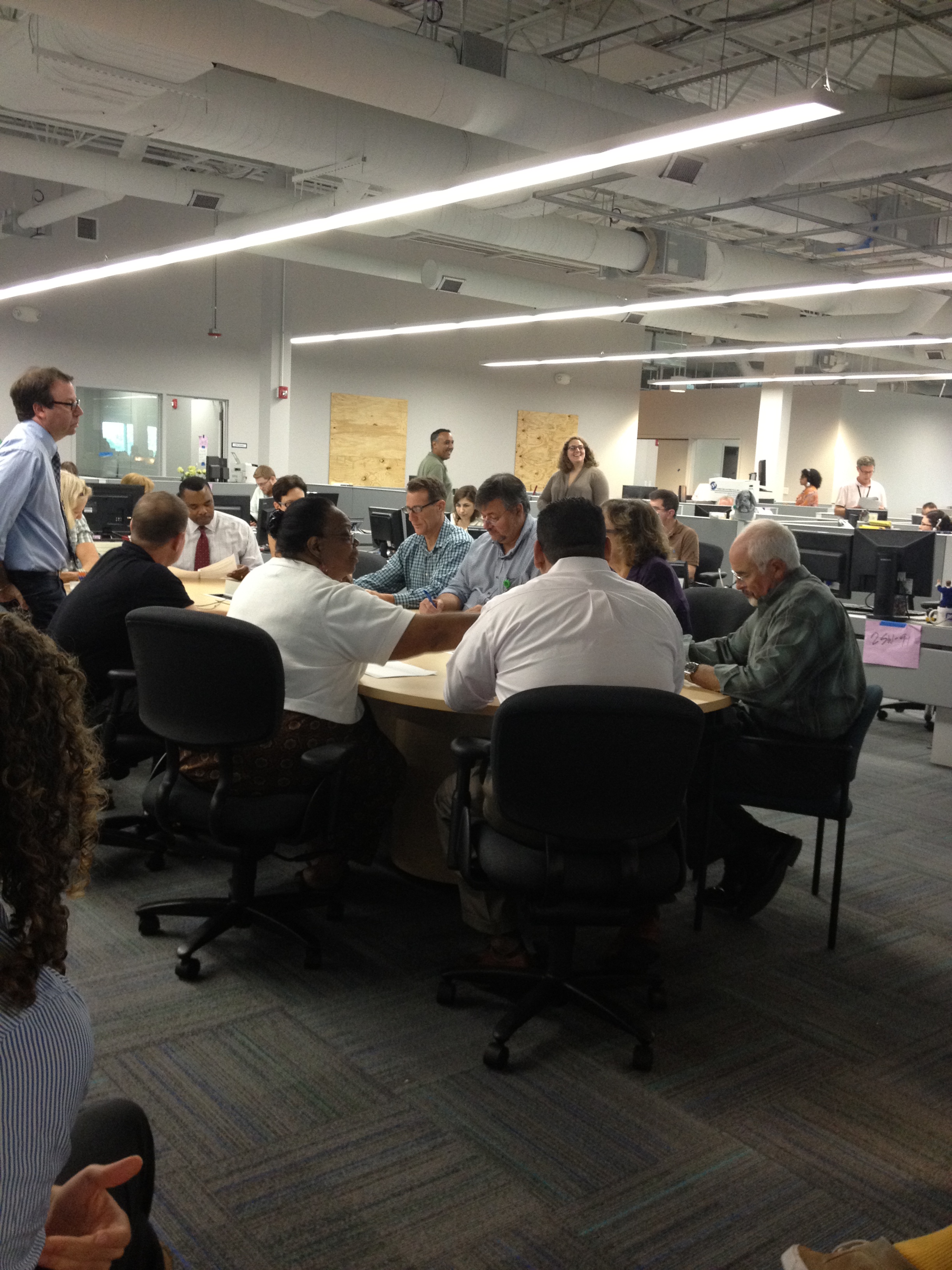 Several news outlets in Miami have built brand new, digital-first newsrooms. The Miami Herald, which recently vacated its iconic offices overlooking Biscayune Bay, now resides within a redesigned warehouse in Doral – a 15-minute drive from Downtown Miami. While the move to the city’s outskirts was largely financial, rebuilding its newsroom forced The Herald to reconstruct physical spaces within the newsroom to maximize collaboration. Editorial meetings, for instance, are held in the open at a long, communal table in the center of the newsroom. This layout fosters deeper engagement between editors and reporters. In addition, The Herald has redesigned its “Continuous News Desk,” placing social media editors right alongside those working on the print edition. The paper calls the setup, “an air traffic control tower for news, information, photos and videos.”